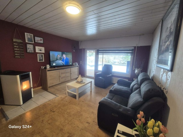 Der 1992 errichtete Anbau mit Flachdach bietet modernen Wohnkomfort: ein großzügiges Wohnzimmer mit direktem Zugang zur Terrasse und zum Garten, zwei Schlafzimmer – darunter ein großes Schlafzimmer mit Klimaanlage (Heizen und Kühlen) – sowie eine voll ausgestattete Küche mit separatem Technikraum. Auch hier sorgt ein eigener Eingang für maximale Selbstständigkeit.